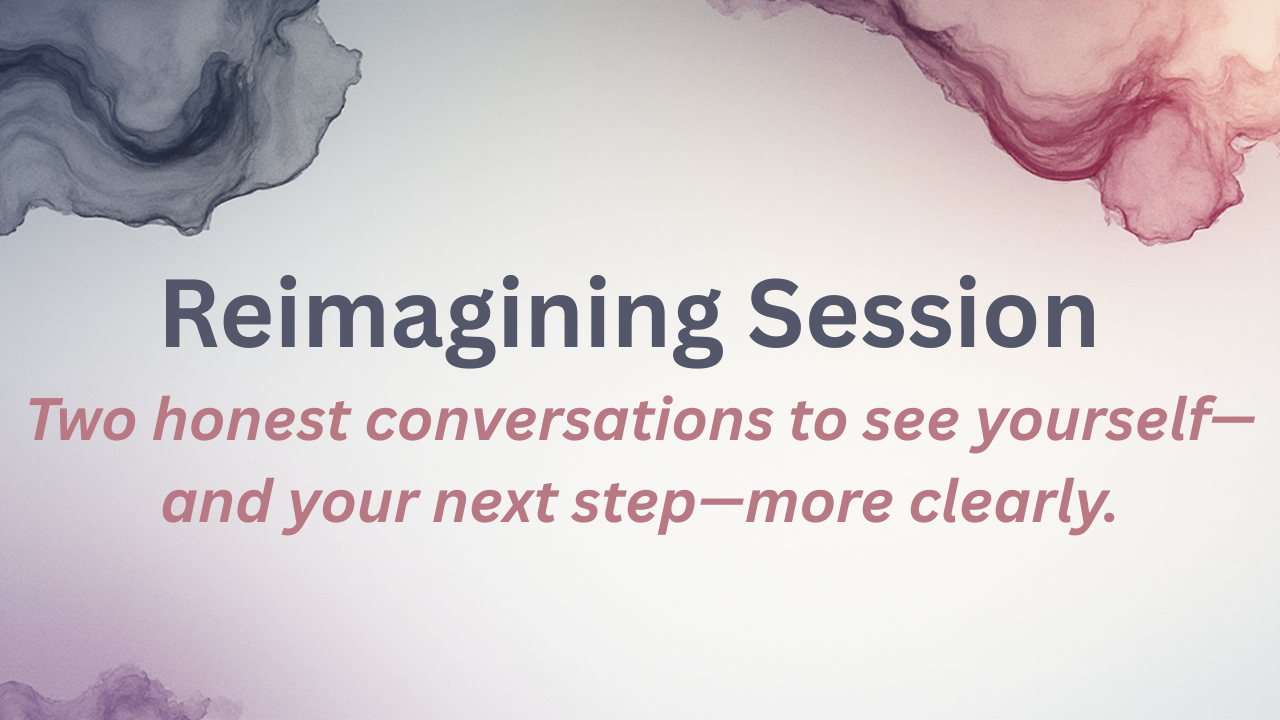 The Reimagining Session is a one-on-one coaching experience designed to help you reconnect with what’s real — and remember what’s possible.